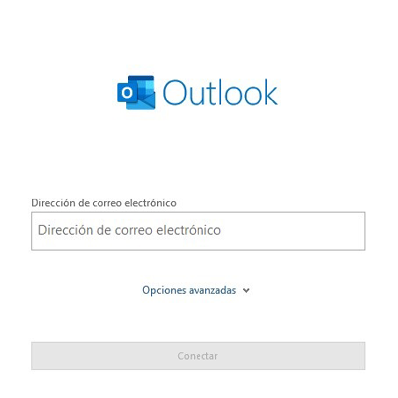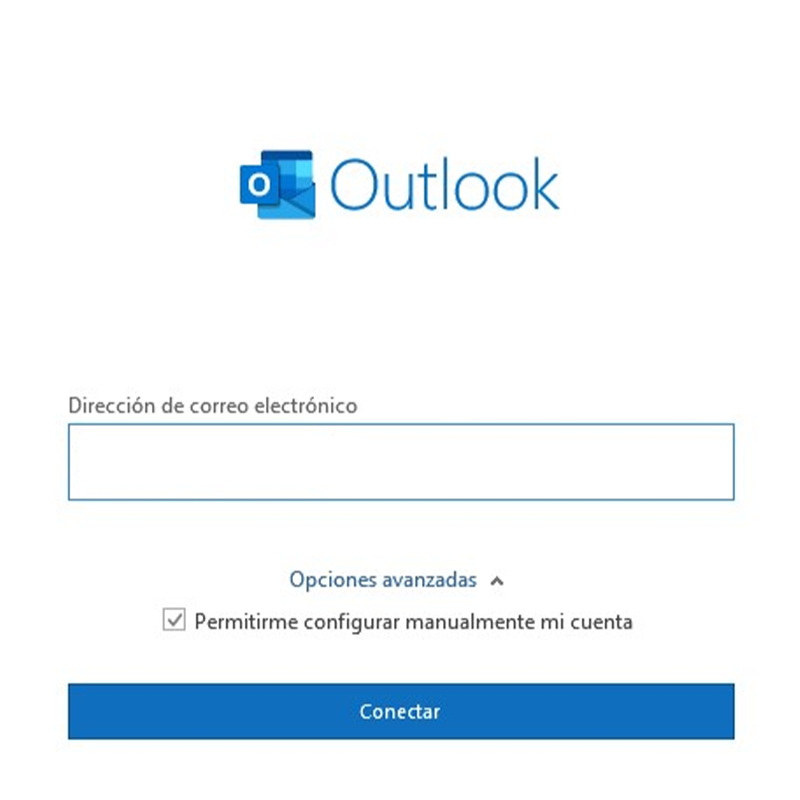 Esta es la primera ventana que verás cuando abres Outlook por primera vez o cuando agregas una nueva cuenta de correo.