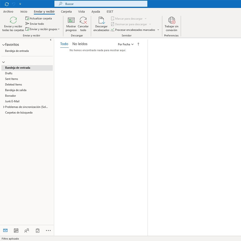 Una vez que Outlook termine de sincronizar, verifica lo siguiente: